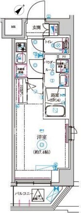 平米数 | 23.49m2 | 部屋詳細 | 洋室7.4帖/K2帖 |