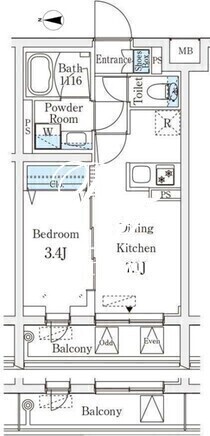 平米数 | 27.80m2 | 部屋詳細 | DK7.1帖/洋室3.4帖 |