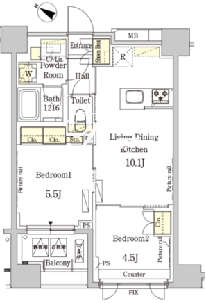 平米数 | 45.43m2 | 部屋詳細 | LDK10.1帖/洋室5.5帖/洋室4.5帖 |
