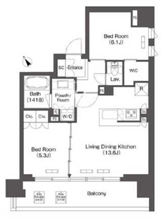 間取/面積 | 2LDK+WIC/57.77m2 |