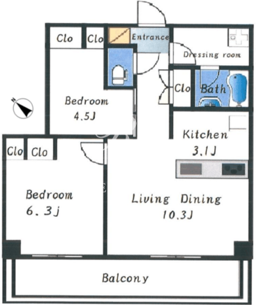所在階/向き | 6階/北西 | 間取り | 2LDK |