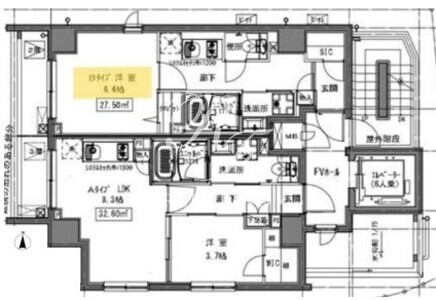 平米数 | 27.50m2 | 部屋詳細 | 洋室6.4帖/K2帖 |