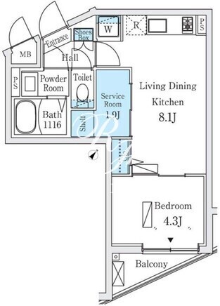 平米数 | 32.39m2 | 部屋詳細 | LDK8.1帖/洋室4.3帖/サービスルーム1.9帖 |