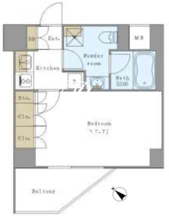 平米数 | 25.50m2 | 部屋詳細 | 洋室7.7帖/K1帖 |