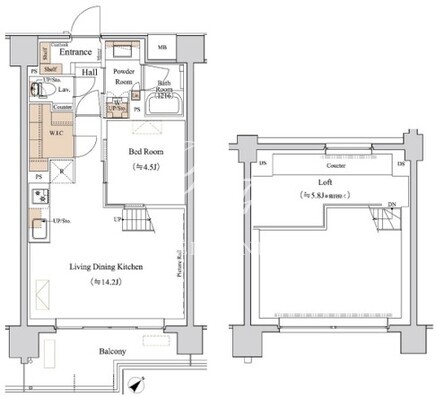 平米数 | 44.59m2 | 部屋詳細 | LDK14.2帖/洋室4.5帖/洋室5.8帖 |