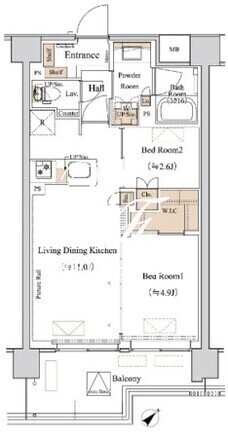 平米数 | 44.39m2 | 部屋詳細 | LDK11帖/洋室4.9帖/洋室2.6帖 |