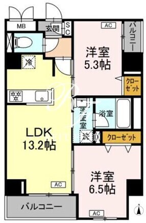 平米数 | 54.10m2 | 部屋詳細 | LDK13.2帖/洋室6.5帖/洋室5.3帖 |