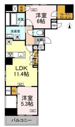 平米数 | 57.93m2 | 部屋詳細 | LDK11.4帖/洋室6帖/洋室5.3帖 |