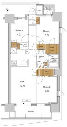 平米数 | 66.86m2 | 部屋詳細 | LDK13.7帖/洋室6.2帖/洋室6帖/洋室4.2帖 |