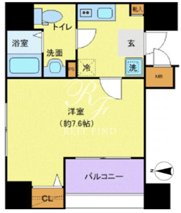 平米数 | 25.59m2 | 部屋詳細 | 洋室7.6帖/K2帖 |