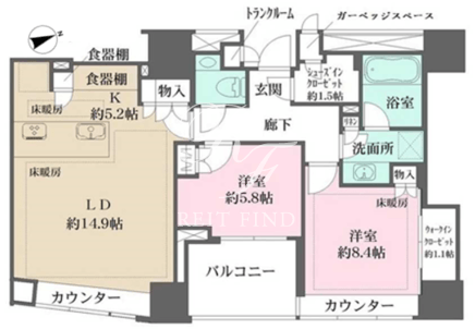 所在階/向き | 13階/東 | 間取り | 2LDK+WIC+SIC |