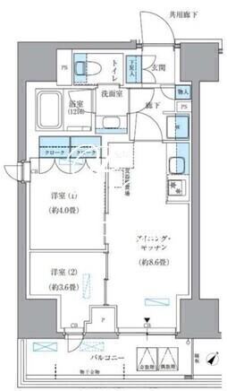 平米数 | 41.16m2 | 部屋詳細 | DK8.6帖/洋室4帖/洋室3.6帖 |