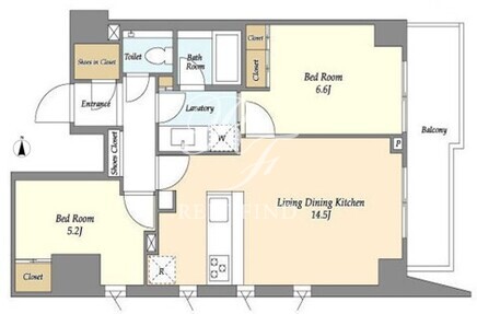 平米数 | 62.08m2 | 部屋詳細 | LDK14.5帖/洋室6.6帖/洋室5.2帖 |