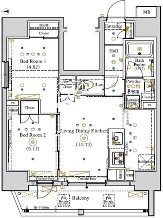 平米数 | 50.35m2 | 部屋詳細 | LDK10.7帖/洋室5.1帖/洋室4.8帖 |