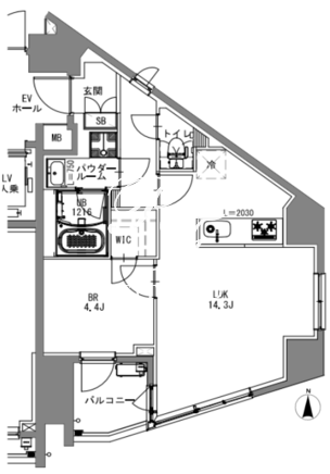 平米数 | 44.79m2 | 部屋詳細 | LDK14.3帖/洋室4.4帖 |