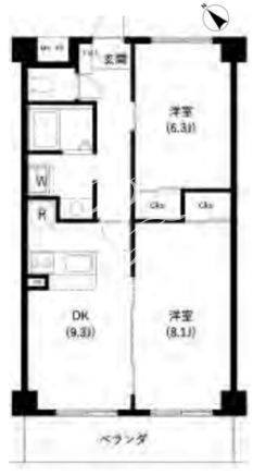平米数 | 53.08m2 | 部屋詳細 | DK9.3帖/洋室8.1帖/洋室6.3帖 |