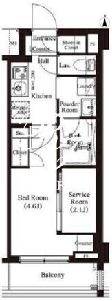 平米数 | 25.60m2 | 部屋詳細 | 洋室4.6帖/K2帖/サービスルーム2.1帖 |
