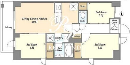 | 平米数 | 52.57m2 | 部屋詳細 | LDK10.6帖/洋室5.1帖/洋室4.3帖/洋室3帖 |