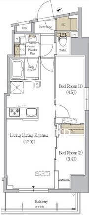 | 平米数 | 44.03m2 | 部屋詳細 | LDK12帖/洋室4.5帖/洋室3.4帖 |