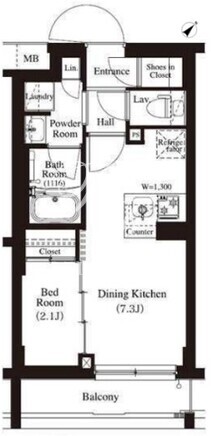 平米数 | 25.71m2 | 部屋詳細 | DK7.3帖/洋室2.1帖 |