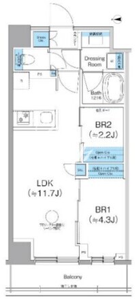 平米数 | 40.09m2 | 部屋詳細 | LDK11.7帖/洋室4.3帖/洋室2.2帖 |