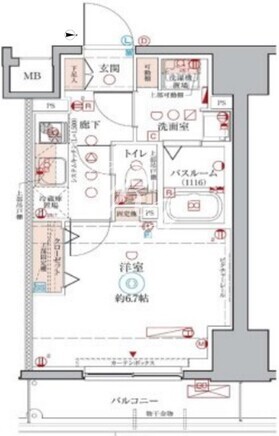 平米数 | 25.49m2 | 部屋詳細 | 洋室6.7帖/K2帖 |