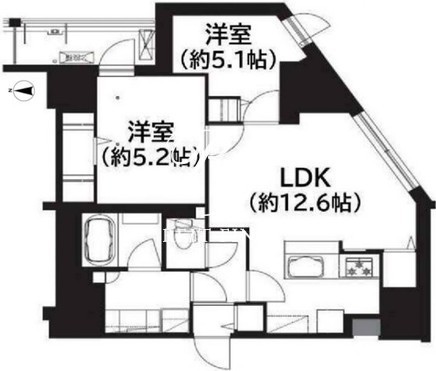 | 平米数 | 57.16m2 | 部屋詳細 | LDK12.6帖/洋室5.2帖/洋室5.1帖 |