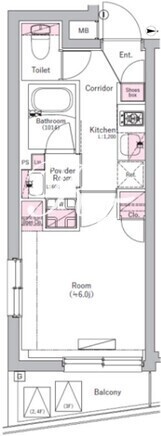 平米数 | 21.17m2 | 部屋詳細 | 洋室6帖/K2帖 |