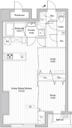 平米数 | 55.87m2 | 部屋詳細 | LDK15.1帖/洋室4.5帖/洋室3.6帖 |