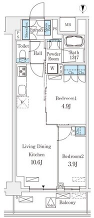 平米数 | 46.26m2 | 部屋詳細 | LDK10.6帖/洋室4.9帖/洋室3.9帖 |