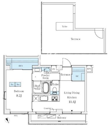 平米数 | 45.59m2 | 部屋詳細 | LDK11.6帖/洋室8.2帖/DEN |