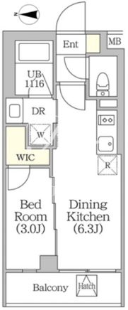 所在階/向き | 3階/西 | 間取り | 1DK+WIC |