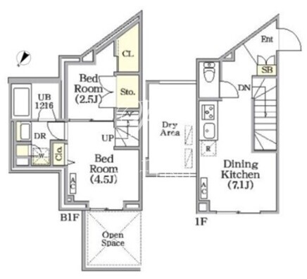 所在階/向き | 1階/北西 | 間取り | 2DK |