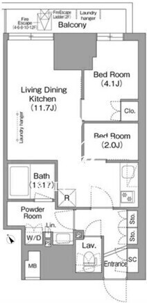 平米数 | 43.19m2 | 部屋詳細 | LDK11.7帖/洋室4.1帖/洋室2帖 |