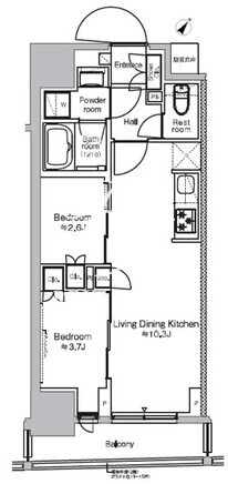 平米数 | 39.25m2 | 部屋詳細 | LDK10.3帖/洋室3.7帖/洋室2.6帖 |