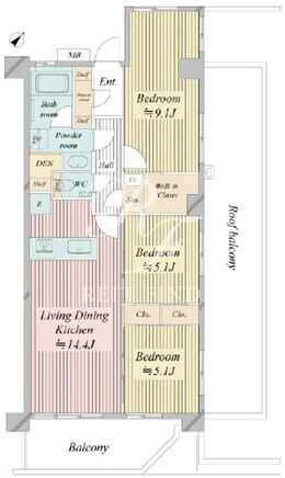 平米数 | 75.05m2 | 部屋詳細 | LDK14.4帖/洋室9.1帖/洋室5.1帖/洋室5.1帖 |