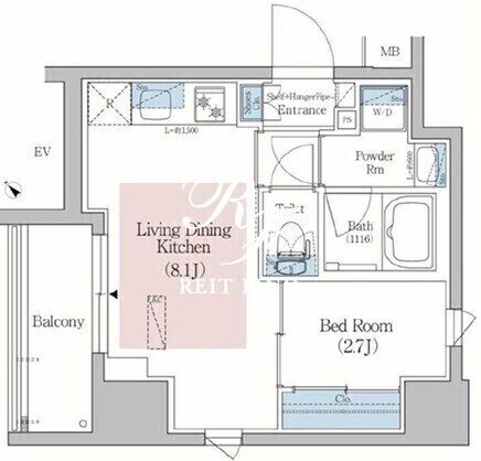 平米数 | 27.00m2 | 部屋詳細 | LDK8.1帖/洋室2.7帖 |