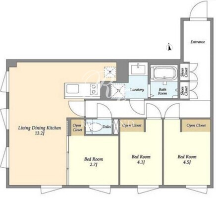 平米数 | 60.07m2 | 部屋詳細 | LDK13.2帖/洋室4.5帖/洋室4.1帖/洋室2.7帖 |