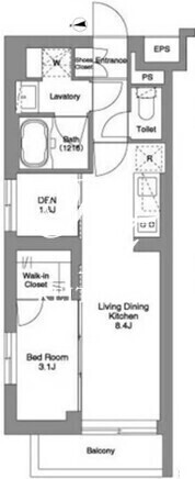 平米数 | 33.65m2 | 部屋詳細 | LDK8.4帖/洋室3.1帖/DEN1.6帖 |