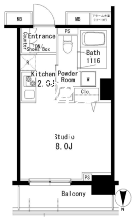 所在階/向き | 8階/北 | 間取り | 1K |