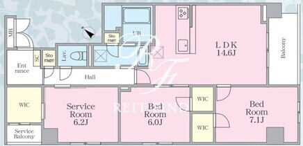 | 平米数 | 79.74m2 | 部屋詳細 | LDK14.6帖/洋室7.1帖/洋室6帖/サービスルーム6.2帖 |