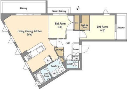 平米数 | 66.66m2 | 部屋詳細 | LDK16.4帖/洋室6.3帖/洋室4.8帖 |