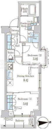 | 平米数 | 47.02m2 | 部屋詳細 | DK8.4帖/洋室5帖/洋室3.8帖 |