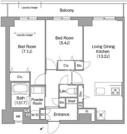 平米数 | 60.60m2 | 部屋詳細 | LDK13.2帖/洋室7.1帖/洋室5.4帖 |