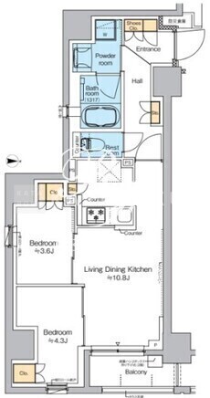 | 平米数 | 49.22m2 | 部屋詳細 | LDK10.8帖/洋室4.3帖/洋室3.6帖 |