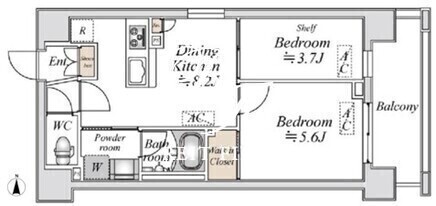 平米数 | 38.70m2 | 部屋詳細 | DK8.2帖/洋室5.6帖/洋室3.7帖 |