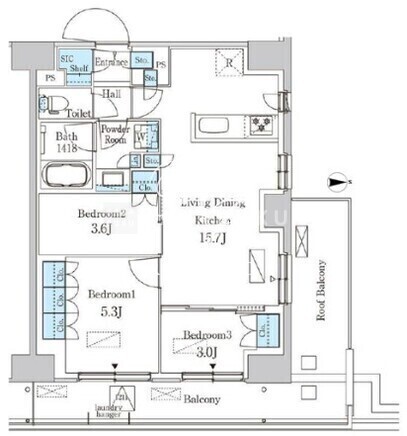 | 平米数 | 62.65m2 | 部屋詳細 | LDK15.7帖/洋室5.3帖/洋室3.6帖/洋室3帖 |