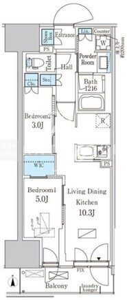 | 平米数 | 45.57m2 | 部屋詳細 | LDK10.3帖/洋室5帖/洋室3帖 |