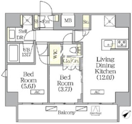所在階/向き | 12階/南東 | 間取り | 2LDK+WIC |
