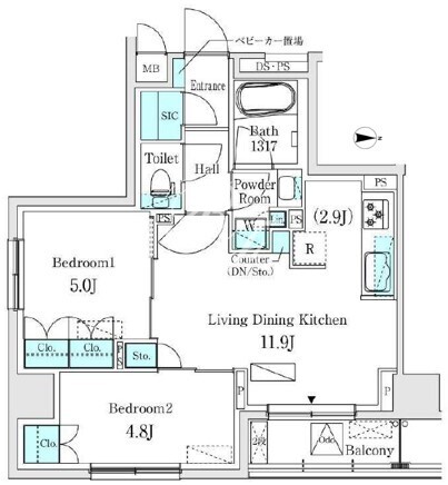 平米数 | 51.16m2 | 部屋詳細 | LDK11.9帖/洋室5帖/洋室4.8帖 |